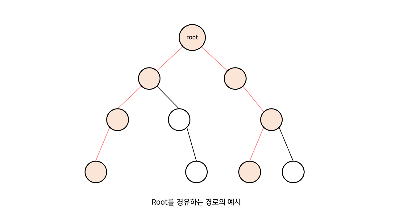 문제는 root를 경유하는 경로이다.