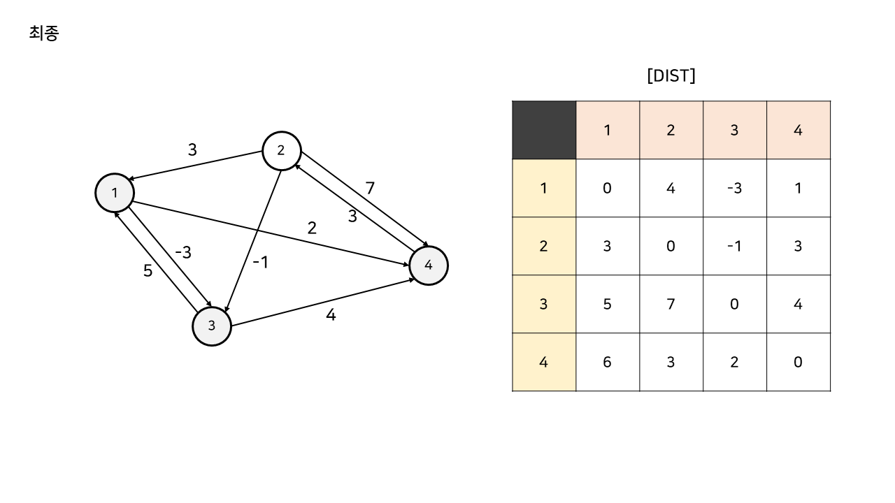 따라서, 플로이드 알고리즘을 적용한 후,
