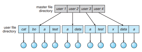단일 레벨 디렉토리의 한계를 보완하기 위해, 디렉토리를 사용자들의 정보를 따로 저장한 MFD(Master-File Directory)와 각 사용자가 가진 파일의 정보를 저장한 UFD(User-File Directory)의 2레벨로 구분한다.