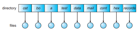 가장 단순한 디렉토리 구조로, 모든 파일들이 같은 디렉토리에 존재한다.