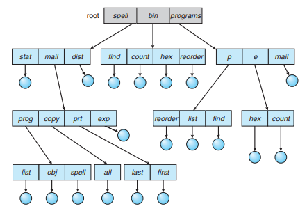 2레벨 디렉토리를 확장한 것으로, 최상위 디렉토리인 root를 시작으로 디렉토리들이 트리 구조를 이룬다. 또한 각 디렉토리는 하위 디렉토리를 가질 수 있다.