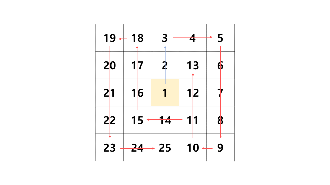위와 같은 판에서 각 칸을 탐색하는 순서는 다음과 같다.