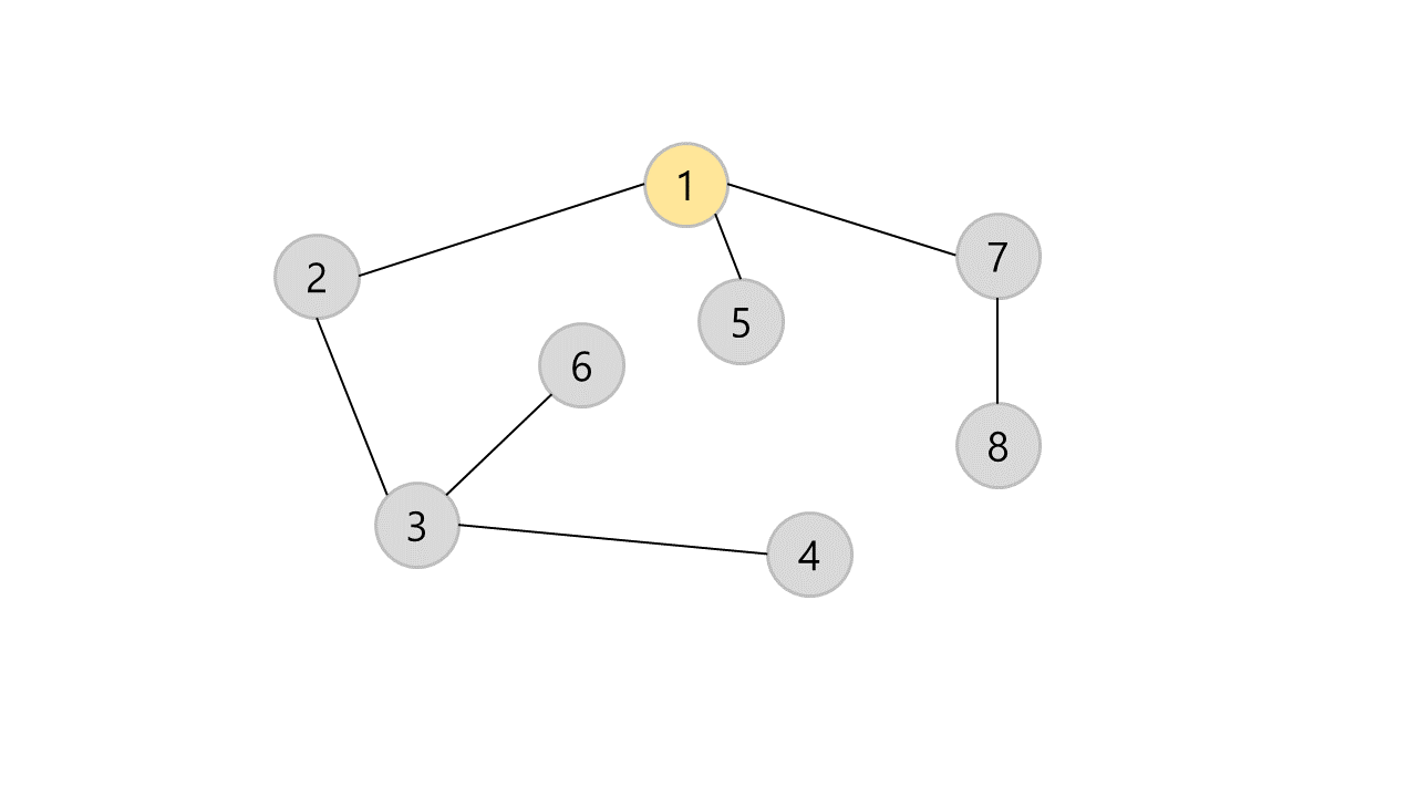 위와 같은 그래프에서 1번 노드를 시작으로 각 노드를 탐색하는 상황을 보자.