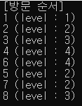 (단, 같은 level의 노드가 여러 개 있다면 낮은 숫자를 먼저 방문한다)