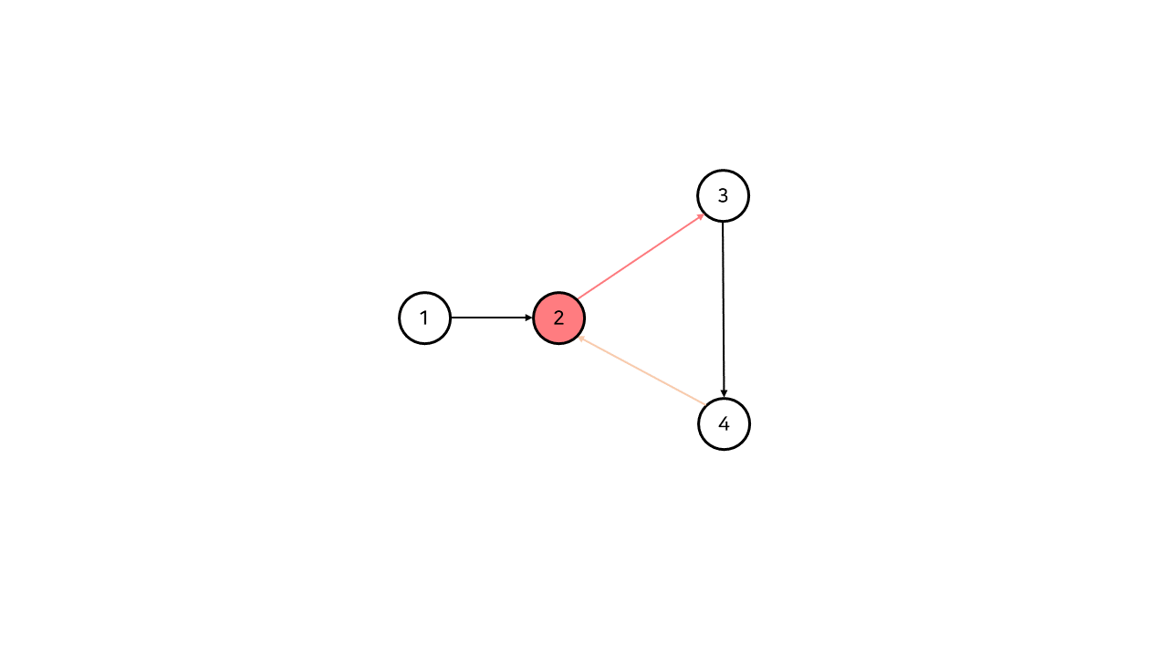 위 그림에서 4번 정점에서 2번 정점까지의 간선은 위상 정렬 내에서 절대로 지나갈 수 없다.